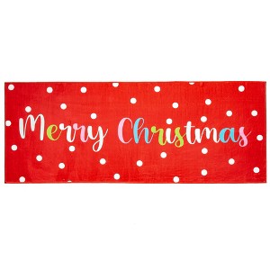 [This review was collected as part of a promotion.] I love this rug! It's perfect to welcome people (and yourself) to your home during the holidays. It's so bright and cheery. I love the red color and how it pops and I adore the writing of merry Christmas. It's also nice and soft. Easy to clean. It's a great addition to my Christmas decorations. Highly recommended.