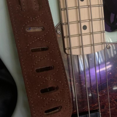 The Levy's 2" Wide Suede Guitar Strap in Brown is a durable and comfortable support solution for guitars. Handcrafted in Nova Scotia, Canada, this brown guitar strap features a suede backing and is adjustable to 52" with a loop and ladder adjustment.