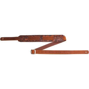 A handmade guitar strap crafted from leather features an adjustable length that allows for comfort throughout studio sessions or next gig.