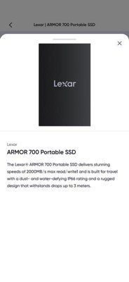 [This review was collected as part of a promotion.] The Lexar ARMOR 700 Portable SSD is a reliable and speedy device. The transfer rate and performance is insanely good. I first used this to games on my Xbox and now I use it too store pictures and videos and it’s working perfectly. It’s small which is super convenient since I like to travel. And it works with any device which is awesome. It feels secure which I appreciate as well.