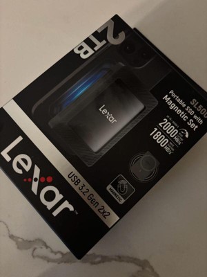 The Lexar® SL500 Portable SSD with Magnetic Set delivers exceptional 2,000 MB/s read and 1,800 MB/s write speeds to store and transfer large files fast. It features a super-slim, solid aluminum unibody construction that easily fits in the palm of your hand and can also magnetically attach to your device. It also comes with Lexar® DataShield™ 256-bit AES encryption software to keep your files secure and is compatible with most computers, cameras, and gaming devices.