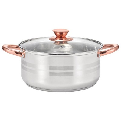 Introducing the Lexi Home 4.25 quart stainless steel dutch oven—your new kitchen essential. With its striking matte and polished striped design, this dutch oven boasts a brilliant mirror-polished interior and a sleek matte exterior, blending sophistication with top-notch performance. Whether you're simmering savory stews or roasting succulent poultry, it provides consistent, even heat for perfect results every time. The included tempered glass lid offers effortless monitoring of your culinary creations, combining style and functionality seamlessly.