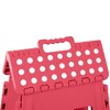 Reach those tall cupboards or racks using our sturdy and safe kitchen step stool. Our easy step stool is ideal for quickly getting to those hard-to-reach areas. It gives you that little extra step you need. The top of the step has rubber grips to keep your shoes steady and to help avoid the risk of slipping. Rubber grips are added to the bottom of the legs for added stability. This folding step stool is great because it's not only foldable, but it's small enough where you can store it just about anywhere. Another nice feature is that it can hold up to 300 pounds, and it has a sturdy handle for easy transporting. It can also be used as a bathroom step stool, which is helpful to kids when they're brushing their teeth and need to reach the sink. They can also use it to sit on it as well.