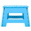 Reach those tall cupboards or racks using our sturdy and safe kitchen step stool. Our easy step stool is ideal for quickly getting to those hard-to-reach areas. It gives you that little extra step you need. The top of the step has rubber grips to keep your shoes steady and to help avoid the risk of slipping. Rubber grips are added to the bottom of the legs for added stability. This folding step stool is great because it's not only foldable, but it's small enough where you can store it just about anywhere. Another nice feature is that it can hold up to 300 pounds, and it has a sturdy handle for easy transporting. It can also be used as a bathroom step stool, which is helpful to kids when they're brushing their teeth and need to reach the sink. They can also use it to sit on it as well.