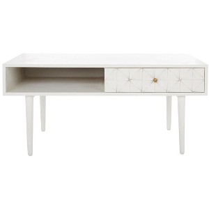 This lavishly designed Lexington Coffee Table is the perfect piece to enrich your living room with sophisticated modern chic. Providing plentiful storage with an open shelf and hard-carved faceted drawer, Lexington's soft whitewash finish seamlessly accents any interior's color scheme.