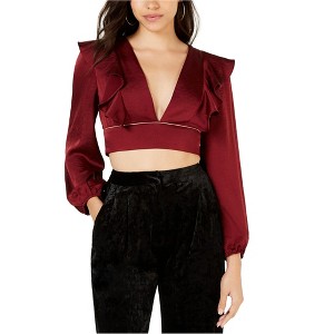 Leyden Womens Plunging Ruffled Crop Top Blouse