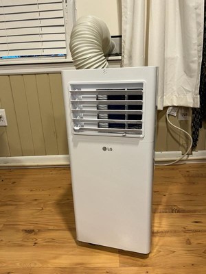 [This review was collected as part of a promotion.] I recently installed this LG 150 portable AC in my studio and overall, I’m happy with it. It came well packaged, with good bottom support so I didn’t have to lift it out of the box. All of the necessary hardware and accessories were included. Installation was pretty easy; even for a solo job for a woman; but here’s a heads up: the instructions didn’t mention that you might need to cut the sliding extension panel to fit the window width. I slid it to fit without cutting, accidentally covering the vent hole, which caused overheating (oops). Fortunately, I figured it out before melting into a puddle. Once properly installed, it cooled my space quickly and runs smoothly. Just wish the instructions included that important little step! Otherwise, it’s a solid and reliable unit. I like it much better than a window AC unit because it does’t block my window nearly as much, so I have more natural light in my studio, which I need. It’s a bit loud, but I just turn my music up a little higher. (-: No longer will I have to get someone to help me remove a heavy window unit out of the window when summer’s over. I’ll just roll this portable unit into the corner and call it a day. One last point; It really does cool the room nicely, which was my main objective. Mission accomplished!