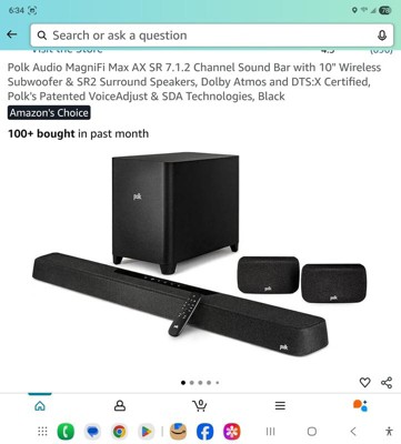First sound bar we’ve used. It’s amazing. Matched with our new 75 inch TV, life could not be better. The sound this produces with the sound bar and separate Subwoofer is amazing.