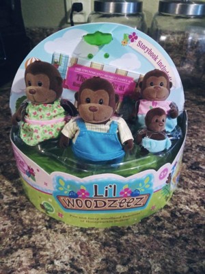 Li'l Woodzeez Miniature Animal Figurine Set - O'Funnigan Monkey Family: Plastic Figures & Storybook Set