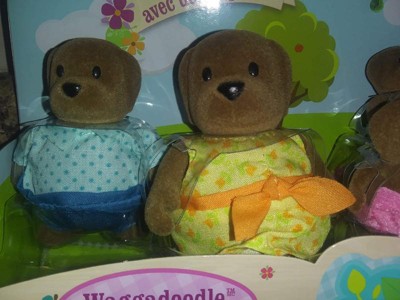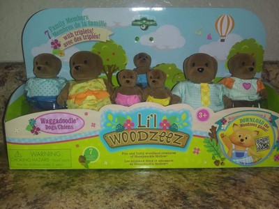 Li'l Woodzeez Miniature Animal Figurine Set - Wagadoodle Dog Family: Plastic & Fabric Toy Figures