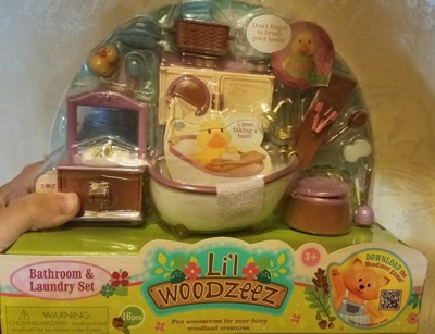 [This review was collected as part of a promotion.] This lil woodzeez bathroom & laundry set is super cute I also found that it can be used for other doll house furniture and can be used with other toys I really love how realistic the items look the other cool thing is that it even comes with toys to use in the bath tub
