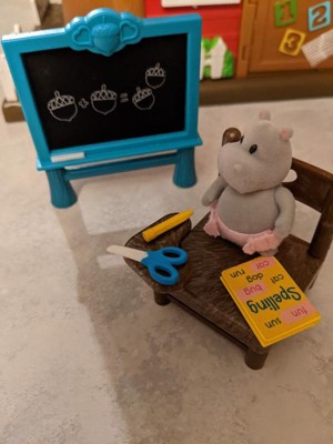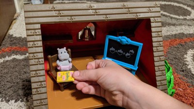 [This review was collected as part of a promotion.] Lil Woodzeez woodland school house is the cutest gift that my daughter received from her Grammy. It comes with a baby hippo wearing a little pink diaper. It has a school desk and chalkboard. It has a miniature workbook, pencil and pair of scissors. They are super small and could be lost or swallowed fairly easy, so use caution. This school house has a real working bell and a clock that you can change the time on. A child needs an imagination vs a screen with means they are playing to learn. Hands on play builds great fine motor skills. The schoolhouse is a perfect addition to the Lil Woodzeez family.