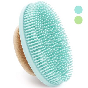 Product Name: LiBa Silicone Body Scrubber - Soft Shower Brush with Bamboo Handle, Blue