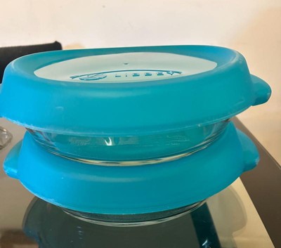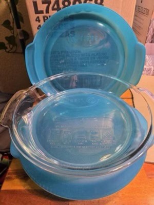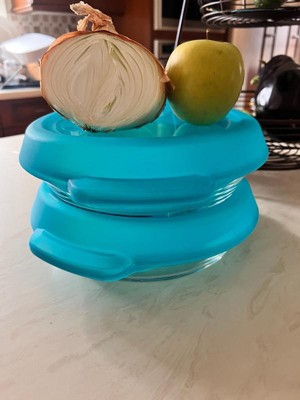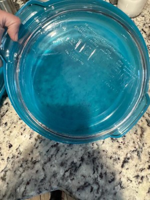 - Includes two 9-inch round clear glass 1.4 quart pie dishes, each with its own fitted plastic lid for storage and transport.