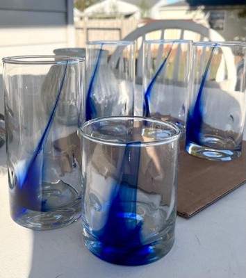 The versatile, dishwasher-safe Libbey Blue Ribbon Impressions 8-piece Glass Drinkware Set makes an impression with its easy-grip indents and splashy blue stripe. It's a great value with 4 tumblers and 4 rocks glasses - all durable, trendy, and ready to showcase your refreshing beverages. Multi-size set is great for family households, with a dimpled shape that's easy for all ages to hold.