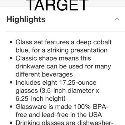 Have been buying these affordably priced and delightfully lovely cobalt blue glasses for more than 20 years. Love the fact that I can easily replace them as needed. Thanks, Libbey!