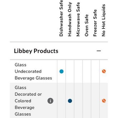 1. CHIPPED. We bought 2 boxes of the Cobalt Flare Beverage glasses. In a box of 8 one had a chipped rim ( no visible outside damage and box well packed. 2. DISHWASHER SAFE? The Target website says dishwasher safe. The Libbey website says colored beverage glasses are handwashing only?