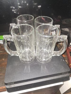 - Includes 4, 12.68-ounce beer mugs (4.81-inch diameter by 6-inches tall)