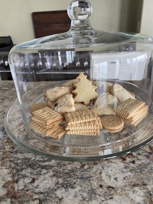 - Includes 1, 13-inch diameter footed glass cake stand and 1, 10.5-inch diameter glass cake dome