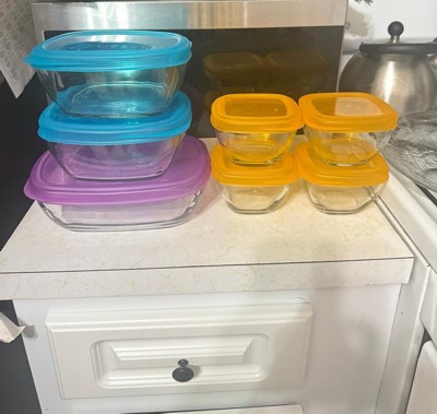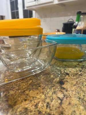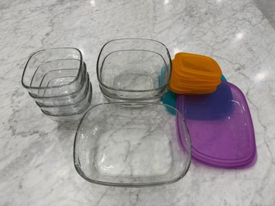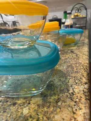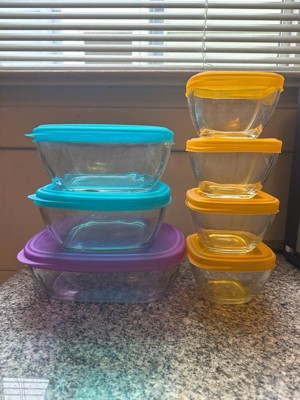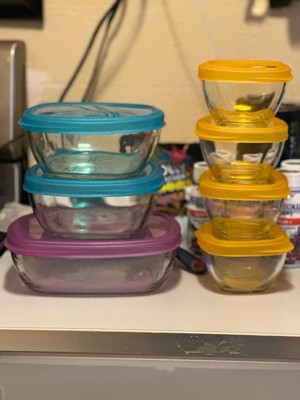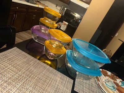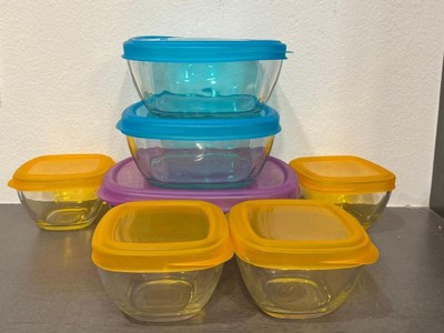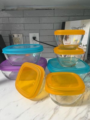 Libbey Serve It 14 Piece Glass Storage Container Set with 2 Cup, 6 Cup, and 8 Cup Bowls and Multi Color Lids