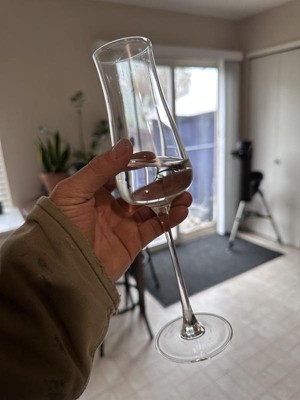 [This review was collected as part of a promotion.] I have been looking for champagne glasses or flutes. These are pretty unique shaped and great to look at. They are thick enough and appear well made high quality. No complaints. Not too skinny to get inside to clean. Fancy and functional! I’m a happy camper.