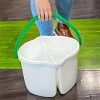 The Libman Clean & Rinse Bucket has a split-design, 3-gallon capacity and features dual-sided pour spouts for easy liquid removal. Excellent for use with the Libman Tornado and Wonder Mops. The carrying handle allows easy transportation and the bucket can be used to store household tools like sponges and rags for easy access. The Libman Company is family owned since 1896.
