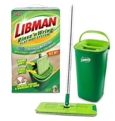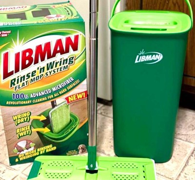 Libman Rinse 'n Wring Mop System - 2ct: Microfiber, Grip Handle, Hanging Loop, Multi-Surface Use