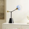Illuminate your space with the LIBRA table lamp, where elegance meets functionality. Standing at 24 inches, this distinctive lamp blends bold black, striking blue, and refined brass, creating a captivating multi-color look. Crafted from durable iron and sleek glass, the LIBRA table lamp effortlessly enhances any rooms decor. Its metal construction provides a sturdy base, ensuring a reliable addition to your home. Perfect for a modern or classic setting, this lamp offers versatile styling possibilities. Let the LIBRA lamp transform your living space, providing a warm and inviting glow. Embrace the perfect balance of form and function as it elevates your home decor with its chic design and vibrant presence.