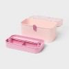 This Lidded Storage Caddy from Brightroom™ is sure to become your go-to organizer for small items. Designed in a light pink hue, this plastic storage caddy features a removable pink tray featuring three small sections for convenient storage, while the snap closure helps keep the contents safe. Great for storing craft supplies, collectibles, small souvenirs and more, it features a handle on top of the lid for easy carrying.