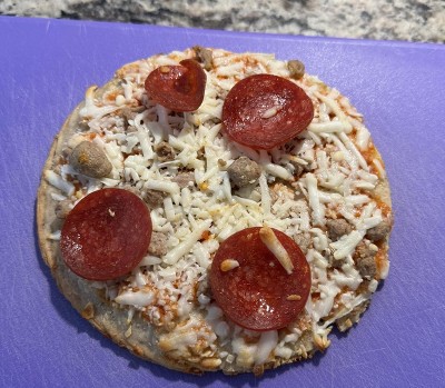 over priced. there was only 2 pepperoni slices, half the sauce and cheese was missing and it was tiny. air fried it according to directions and it was still mushy