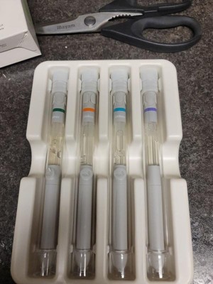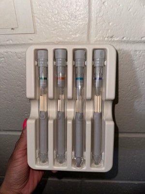 I love these pens! I had bought one about a month ago but unfortunately sat on it the other day causing it to snap in half :( After trying to find the pen again I discovered they sold this little four pack with different blends! I am so excited to try all the new ones. Although the scents do all blend together a bit, you still smell certain scents stronger if you open the tab. Plus they all smell good together anyway. The actual pen part I really enjoy. Everyone is different with their pens but once the ink started flowing after scribbling for a few seconds, the writing was so smooth. It doesn’t feel expensive or anything but it def isn’t a dollar store pen. I’m not sure how much it’s helped my stress since I don’t usually need to use a pen all the time when I’m stressed. I also can’t speak for long term but I didn’t notice much leakage for the month I had the one. I would always keep it in the little holder when not using it. There were a few oil spots I noticed but nothing big. And I never noticed leakage while using it. I do very much enjoy smelling it as I’m writing. My coworkers even started popping up randomly sniffing my pen! Overall, this product isn’t a necessity by any means but it does help me put a little joy into each day.