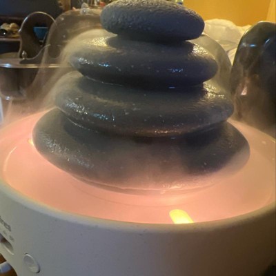 I love the vapor and stones, but I don’t smell much essential oil diffusion happening. I love the look of it and the lights. It’s also a little large, and takes up a big chunk of the side table