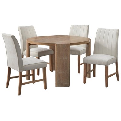 Lifestorey 5pc Augusta Modern Round Dining Set Light Oak/Cream