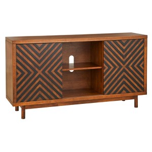 Instantly transform your dining space with the distinct design of the Mason Buffet by Lifestorey. Mid-century inspired with urban elements, the Mason cabinet offers ample storage for your china, linens, serving pieces, and more. Fashioned with cone style legs in a warm tobacco finish, the sliding panel doors with a stunning black pattern adds the perfect focal point to any dining room space.