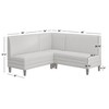 The 3pc Philips Banquette Set creates a cozy space for dining or relaxing with a cup of coffee. Perfect for the corner of a dining room or breakfast nook, this set is generously cushioned and upholstered in a beige linen-like fabric a vertical stripe print on the seat-backs. Legs are made from solid rubberwood and finished in walnut, giving the set a modern-farmhouse touch. Use the set as extra seating along any wall in your dining room or kitchen, or place a table in front to create a comfortable spot for any meal. Includes corner chair and two benches.