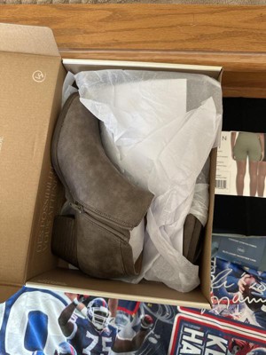 Get the Western trend and make it work for you in these comfortable ankle boots for women. Faux leather upper with a round toe, metallic decorative outside zip, and functional inside zip. Linings partially crafted with recycled materials.