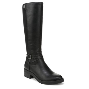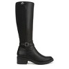 Riding boots with incredible comfort. These women’s tall boots with built-in stretch and sophisticated details are equally comfortable and stylish. Faux leather upper with a round toe, inside zipper for easy on/off, decorative strap and buckle details, and stretch knit back panel for extra flexibility and maximum comfort. Linings crafted with partially recycled materials.
