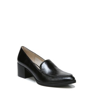 A polished pump with the perfect height, you'll love wearing this tailored look. Faux leather upper with a round toe, slip-on fit, and loafer-inspired styling.