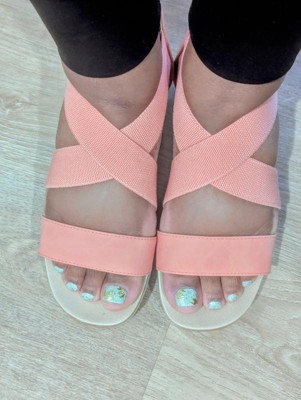 Feel light and breezy in these sporty platform sandals for women. Strappy sandals designed with faux leather, a soft square open toe, stretch gore straps for added flexibility, back zipper for easy on/off, and lightweight design. Linings crafted from partially recycled materials.