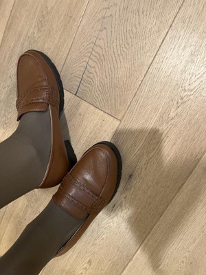 Step into timelessness. A casual penny loafer like this belongs in your cart and on your feet. Faux leather upper with a rounded toe, slip-on fit, stitched details, and lug sole. Vamp and sock lining, toe box and heel counter partially crafted with recycled materials.
