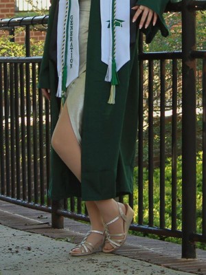 I originally found these shoes in a store, tried them on, and fell in love-- but not so much with the price tag. Thankfully, I checked on the website and found them on sale for almost half off! Woo-hoo! Bought and received just in time for graduation. Also wore them to the graduation party and the heel height makes for comfort for about 2+ hours of constant standing/walking (for me anyway). Hands down the most comfortable stylish pair of shoes I own :)