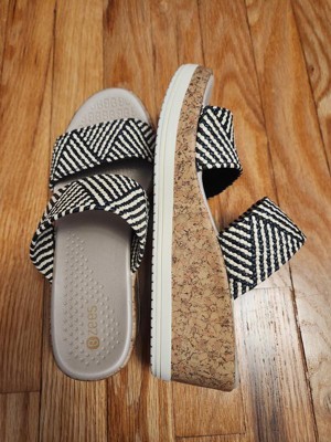 [This review was collected as part of a promotion.] I was cautiously optimistic about these sandals. I have a bunion on one of my feet, making it difficult to find comfortable sandals/shoes that are also cute! These Resort Wedge sandals fit the bill! I like the black and cream geometric pattern--they're neutral enough to match a lot of my warmer weather clothes. The front strap has enough give to accommodate my wider left foot, while comfortably taut on my normal width right foot. It's been too cold and wet to wear these outside for an extended period of time, so I've been wearing them around my house, and they've been really comfy! I walk to/from work daily, and I can't wait to put these into my shoe rotation--they're going to be great walking shoes that are attractive enough for work!