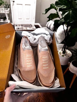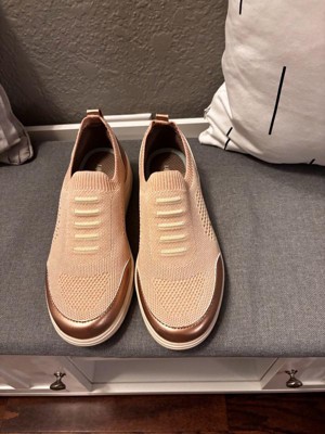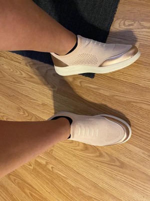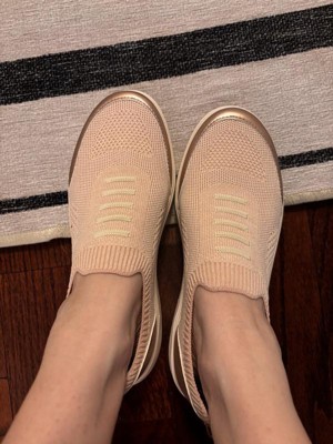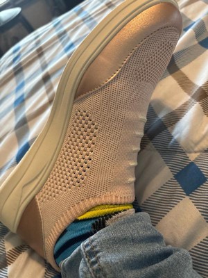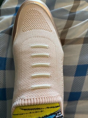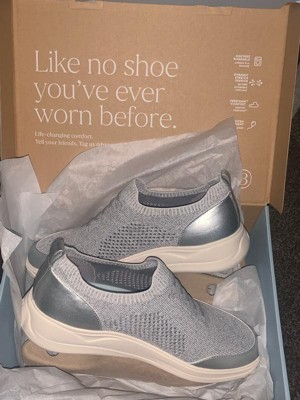 [This review was collected as part of a promotion.] My first impression of these shoes was underwhelming. I wasn’t super in love with the look, but after wearing them a few days they’ve really grown on me. I tried them for a day without socks and as time went by, I fell in love with the color but I was bummed every time I took my foot out and the insole stuck my foot and came out with it. Although I ordered my usual size, they seemed a bit big and I was worried my heel would rub raw. I was pleasantly surprised that my heel did not slip out with each step, however, by the end of the day, my pinky toes were red from them rubbing. On day two I wore socks, and these shoes rose to the occasion. No rubbing anywhere on my foot and they are so light, with a gentle hug all around. I didn’t think they had much arch support but as time has gone by, my foot feels like it’s molded to the shoe and the arch support is there. So I am very pleased with these shoes, as long as I wear socks. Easy to slip on and off, and so light and comfortable!