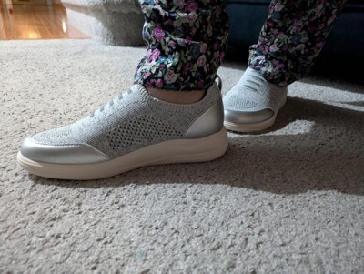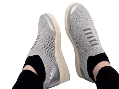 [This review was collected as part of a promotion.] Very comfortable and reminded me of a shoe you may have bought in the 80's with the shiny silver highlights. The shoes do not come in half sizes and I wear a 10 1/2 so I ordered an 11 M. The size 11 is way too long and I am returning for a size 10. These shoes are very airy and my feet will appreciate this in the hot summer months.