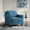 The Harper chair is designed to fit your space and style. Built for lasting quality, the Harper combines form, function and ease of assembly designed for the eclectic life. The design lines and scale of the Harper chair brings a modern touch to spaces large and small with versatile elegance. High density foam cushions with rolled arms and beautifully button tufted back hug your body with comfort and is poised to transform any room into your favorite place to let go of the day and relax in pure bliss. Combining premium microfiber upholstered fabric and solid wooden frame, this durable plush chair invites you to rest in the knowledge of years of enjoyment to come.
