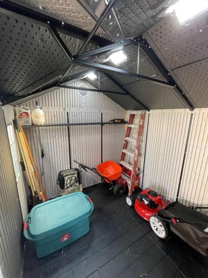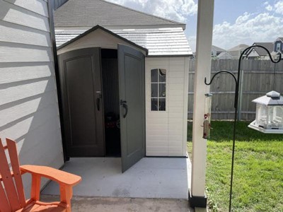[This review was collected as part of a promotion.] First things first, this 10ftx8ft Lifetime shed was the way to go! Upon opening the box, I immediately noticed that the shed is made from high-quality, durable, materials. Assembly was a breeze due to its organized instruction booklet and the fact that all parts and hardware bags were well labeled. After assembly, I was amazed at the space on the inside. I quickly started filling it up with home and lawn care items, supplies, and equipment. Just freeing up the space in our garage was relieving. These things have been living in the garage for some time now and it felt good to get the garage back! The overall aesthetic of the shed within our backyard is remarkable. The color scheme allows for this shed to really blend in and be at home all while adhering to our HOA's rules regarding sheds. A few of the features that I'd like to highlight are the skylights, windows, weatherproofing, and shelves. Our home doesn't have any sort of electrical outlet on that side of the house so the skylights, coupled with the double windows, are a lifesaver. They really allow for ample light to penetrate the shed without ever flipping on a switch. The shelves are an anxiety reliever, as I can now store harsh and harmful chemicals up and out of reach of my daughter. Since I've assembled the shed, we've had two days of pretty hard rain. I was truly expecting some water to have gotten inside, but I kid you not... there was not one single drop of water inside of this shed!