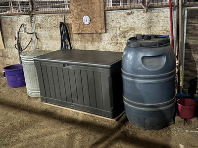 We bought this deck box about 3 weeks ago. We love it! It is a great place for all the garden hoses, and other miscellaneous yard equipment. Highly recommend!