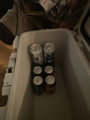 [This review was collected as part of a promotion.] I got this cooler in exchange for my honest review. I love how easily this cooler opens. I like the feet on the bottom. My only complaint is that there is not a spout to empty the cooler. It kept ice well and was perfect for our Super Bowl party. It held two bags of ice.