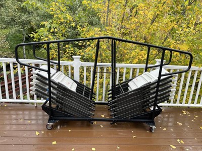 [This review was collected as part of a promotion.] Great, heavy duty, easily manageable chair cart for my lifetime chairs. Super sturdy but light enough to move easily. Simple to assemble (took about an hour). Narrow with spin able wheels that make it really easy to maneuver around corners, hallways, through doors etc.
