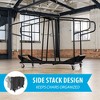 Your business, convention center, church, or event can easily be well supplied for seating with the Lifetime Chair Cart. Store and transport your Lifetime Commercial and Light Commercial chairs with ease using the smooth caster wheels and 34 of our original Commercial grade folding chairs. Lifetime Padded Folding Chairs can be stored up to a quantity of 40. The lifetime 2nd generation Commercial Grade Folding chairs can be stored to a quantity of 50. The cart is constructed from durable, weather-resistant, powder-coated steel, so you can rely on it confidently. Enjoy the convenience of a cart that is designed to fit through a standard doorway and is simple to maneuver. Store and transport your Lifetime chairs the easy way with the Lifetime Chair Cart!